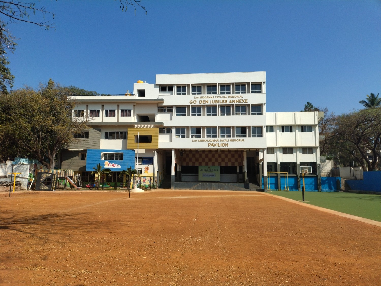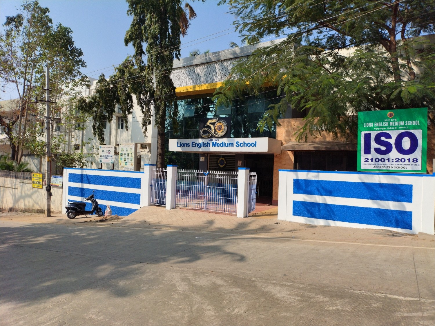 Lions English Medium School, which is housed in one of the most imposing campus in the heart of. Vijaynagar with its natural back drop, lends charm and beauty to the passer by. The high rise school building and campus stands on a high pedestal with its sprawling playground has been an inspiration to the learning community. Lion Siddanna Yavagal as its founder Chairman the school was inaugurated by Shri Gopal Reddy, the then Commissioner of HDMC on 22-06-1972. Pertinent to the motto of the Lions "We Serve" Melvin Jones Education Society (named after the founder of Lionism) was constituted to impart overall development and quality education in the media of ENGLISH, KANNADA & HINDI to the children coming from surrounding areas. "Promotion of Education" is one of the main activities of Lionism. M.J.E. Society, besides rendering an unique service in the field of Education has been relentlessly engaged in the promotion of Sports, Drawing, Yoga and various cultural activities. The school also provides Computer Education & digital classes to enrich the knowledge of the students. Lions English Medium School which was started with a bare strength of 70 in KG and 1st Std, in 1972 has now reached a milestone of more than 1000 students, with classes from Playhome to Std. VIII.